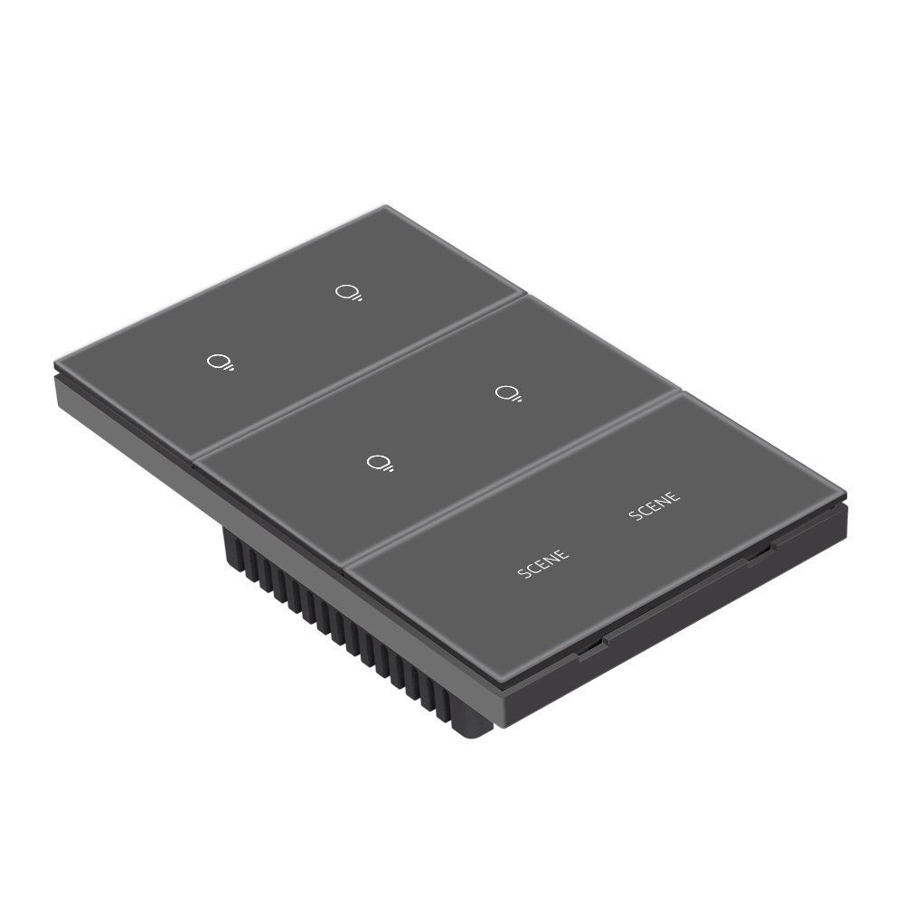 switch allows users to activate predefined scenes or control connected devices with a single press. The clear engraved icons and